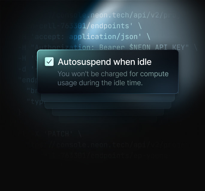 • Powerful API. Use the Neon API to create databases, run migrations, and manage limits.